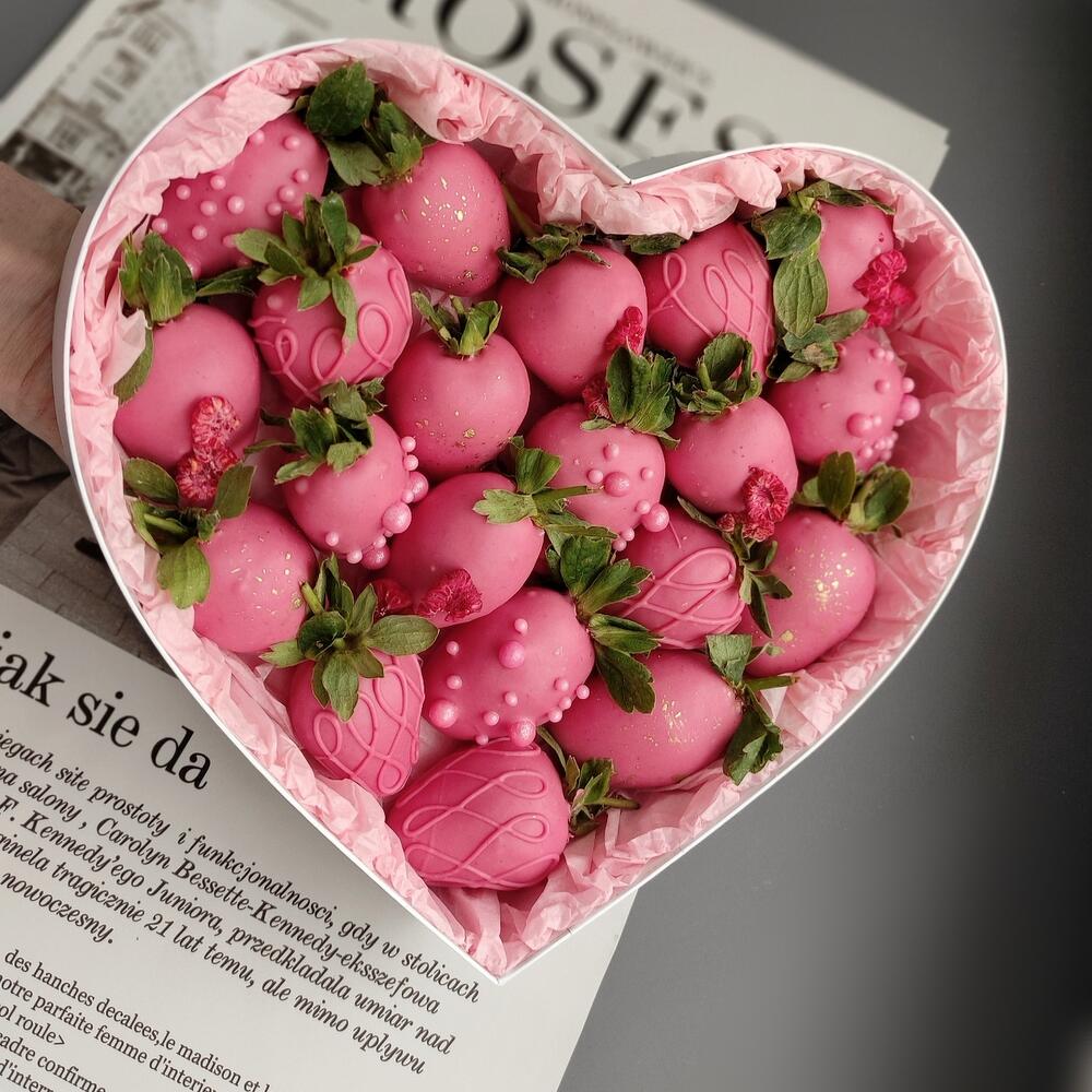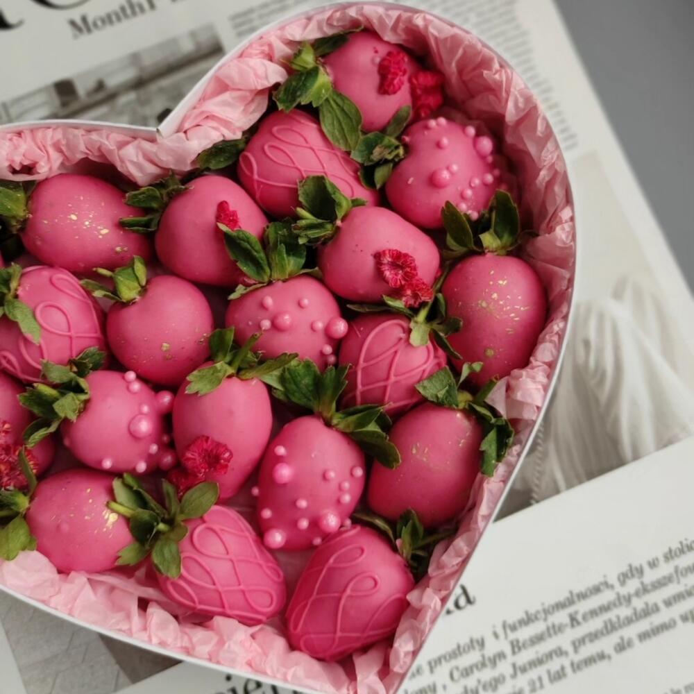 Descriere Produs: Acest aranjament delicios și elegant conține 21 de căpșuni proaspete, acoperite cu ciocolată belgiană în nuanța de roz, aranjate cu grijă într-o cutie cu formă de inimă. Este un cadou perfect pentru a sărbători momente speciale, cum ar fi aniversări, zile de naștere sau pentru a surprinde persoana dragă.