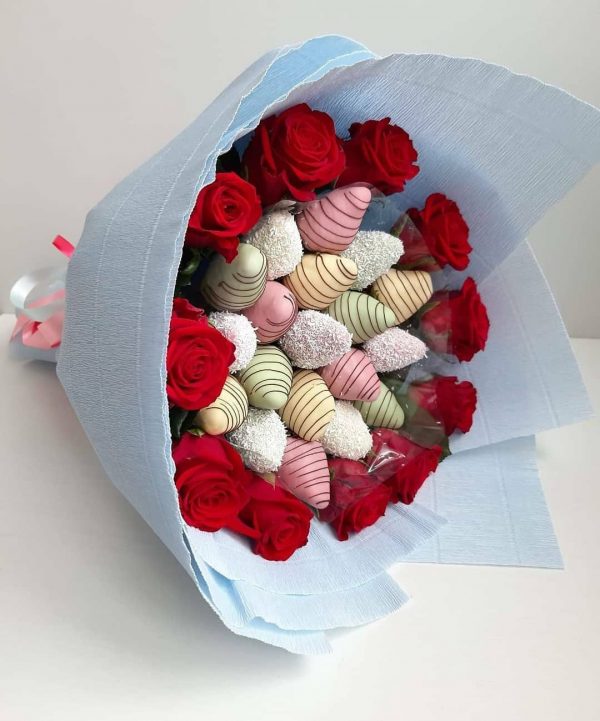 Capsuni invelite in ciocolata si trandafiri Nr7