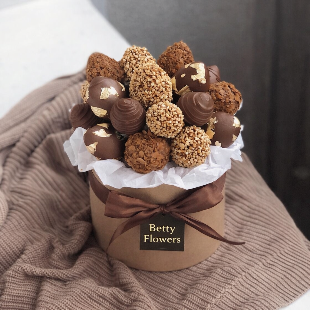 Chocolate Bliss Arrangement este o cutie elegantă ce conține 25 de căpșuni proaspete, acoperite manual cu ciocolată neagră premium. Un cadou rafinat, perfect pentru aniversări, momente romantice sau surprize speciale.