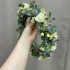 Această cocardă elegantă, special creată pentru nunți, este realizată din flori naturale, combinând frumusețea și simbolismul dragostei. Compoziția include: