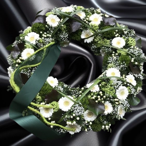 Coroana Funerara Cu Gerbera Alba Si Cale Negre