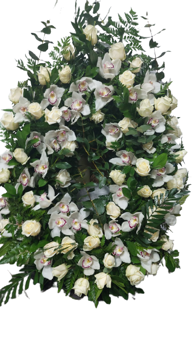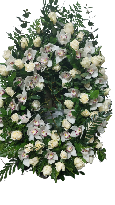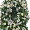 Aceste flori funerare vor purta regretul dvs. adanc alaturi de cuvintele de compasiune. Mesajele sunt scrise pe o banda impartita in doua.