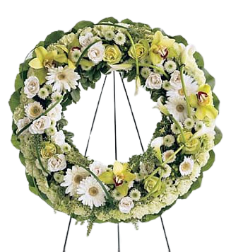 Aceste flori funerare vor purta regretul dvs. adanc alaturi de cuvintele de compasiune. Mesajele sunt scrise pe o banda impartita in doua.
