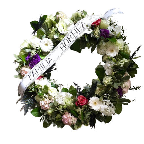 Acesta coroana funerara rotunda exprima sentimentele de apreciere pe care le-ai avut fata de persoana plecata. Coroana funerara are in compozotie hortensie, trandafiri, eustoma, gerbera si verdeata mixta.