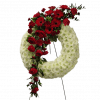 Aceste flori funerare vor purta regretul dvs. adanc alaturi de cuvintele de compasiune. Mesajele sunt scrise pe o banda impartita in doua.