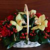 contine cos cu trandafiri de culoarea rosie cu verdeata decorativa