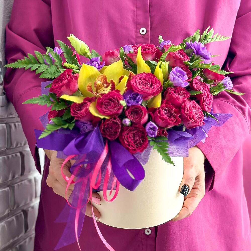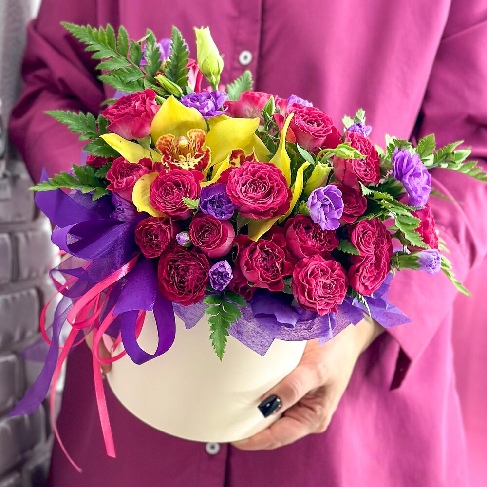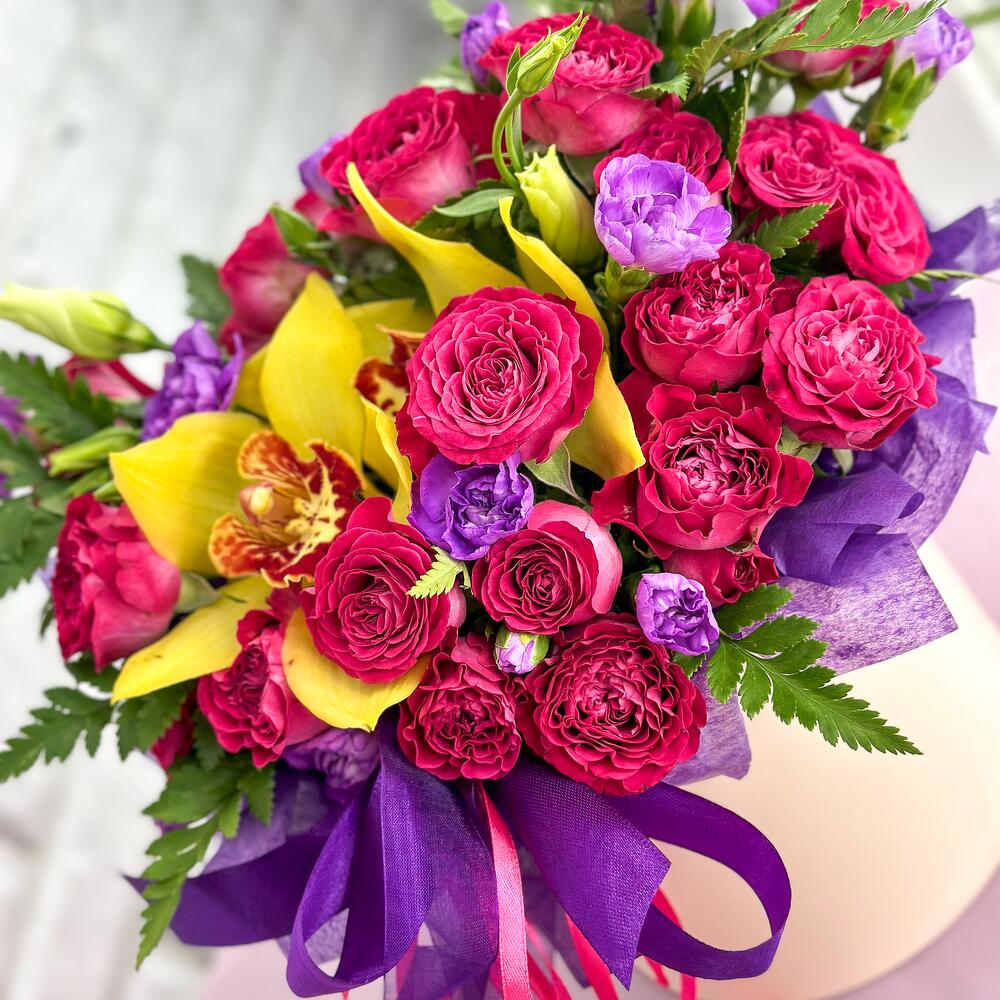Poza prezinta un buchet cu flori realizata si livrata la comanda online a unui client