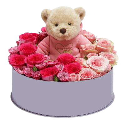 CUTIE CU TRANDAFIRI SI URSULET DE PLUS