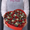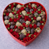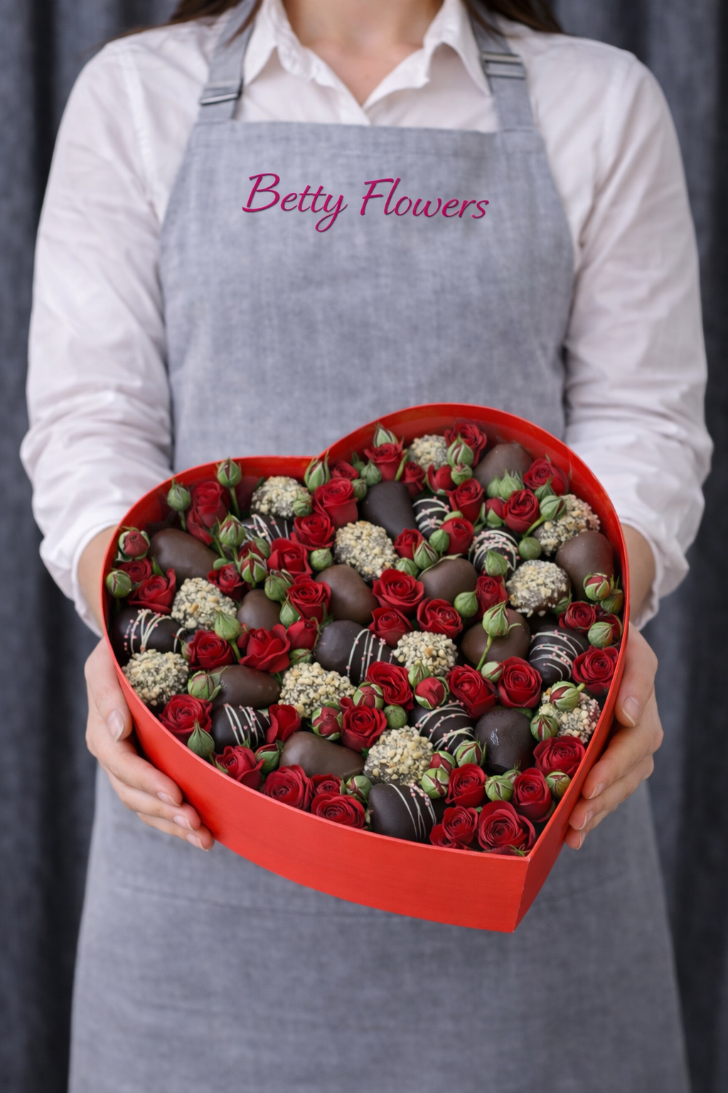 Cutie Luxury cu Căpșuni în Ciocolată și Trandafiri Roșii este un aranjament elegant și romantic, creat pentru momente speciale în care vrei să impresionezi prin rafinament și gust desăvârșit. Combinația dintre căpșunile proaspete glazurate în ciocolată fină și trandafirii roșii delicati oferă un cadou spectaculos, perfect pentru aniversări, declarații de dragoste sau surprize memorabile.