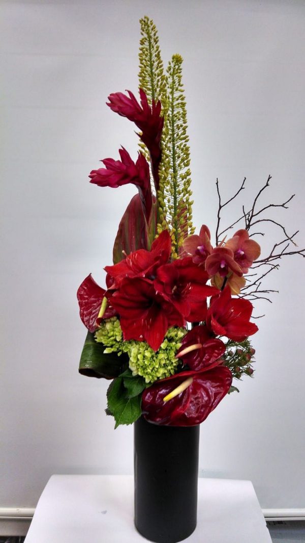 Contine : eremurius, amarilius, phalynopses , hortenzie, anturium, verdeata decorativa.