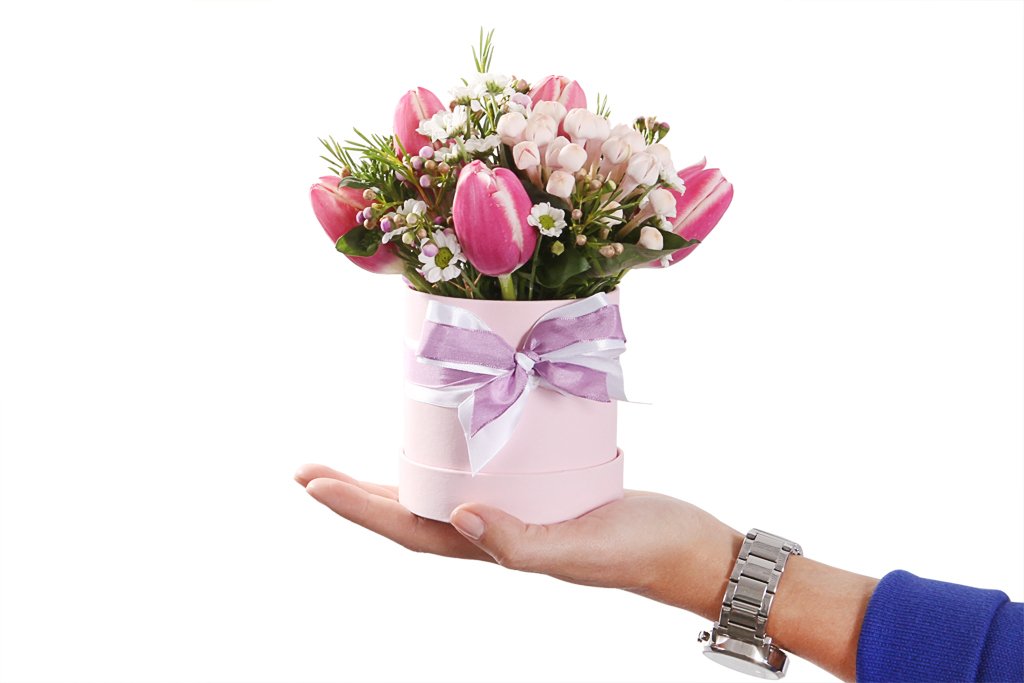 Când cauți o combinație florală distinsă și interesantă, îți recomandăm să-ți îndrepți privirea către creația noastră din lalele roz, bovarie,santine albe, ornitogalum alb, cale albe, wax.