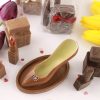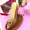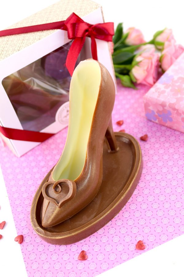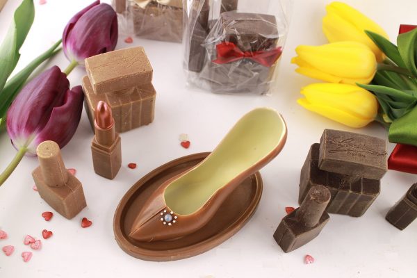 Figurine din ciocolata. Atunci cand vine vorba de ciocolata, creativitatea noastra nu cunoaste limite. Iar formele si figurinele din colectiile noastre sunt lucrate cu maxima atentie la detalii si ambalate in cutii originale. Figurine din ciocolata. Figurina din ciocolata belgiana cu lapte in forma de pantof , cadoul perfect pentru toate doamnele si domnisoarele. Femeile au o slabiciune pentru pantofi si pentru ciocolata