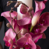 Compoziție Florală: Orhidee premium și Calla (Calla Lilies) în nuanțe vibrante de ciclam/magenta.