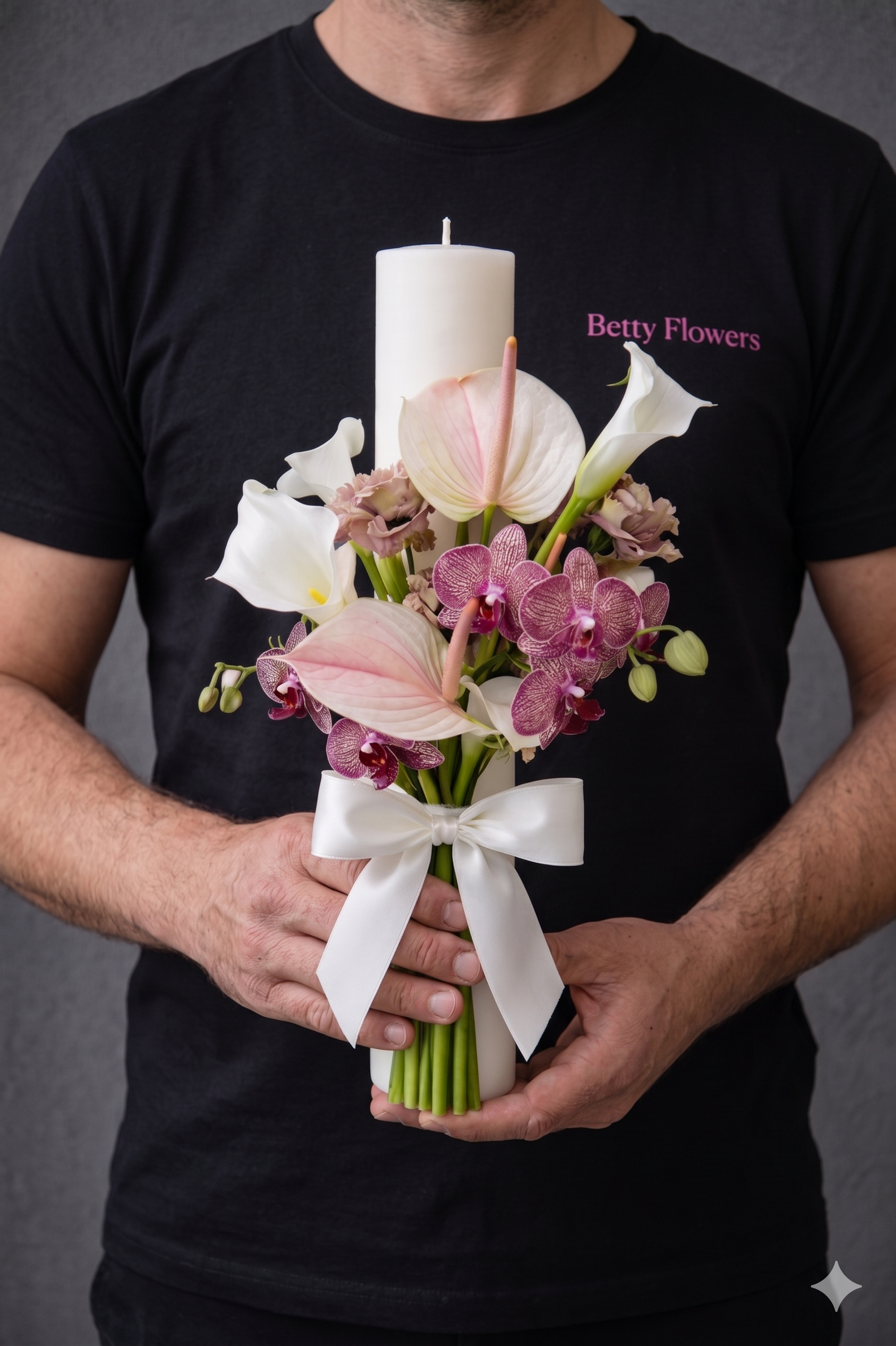 Transformă momentul cununiei tale într-o amintire desprinsă din revistele de nunți cu lumânarea noastră de cununie, o creație florală sofisticată, semnată Betty Flowers. Acest aranjament este gândit pentru mirii care apreciază eleganța modernă, îmbinând texturi exotice cu o cromatică rafinată, perfectă pentru o ceremonie memorabilă.