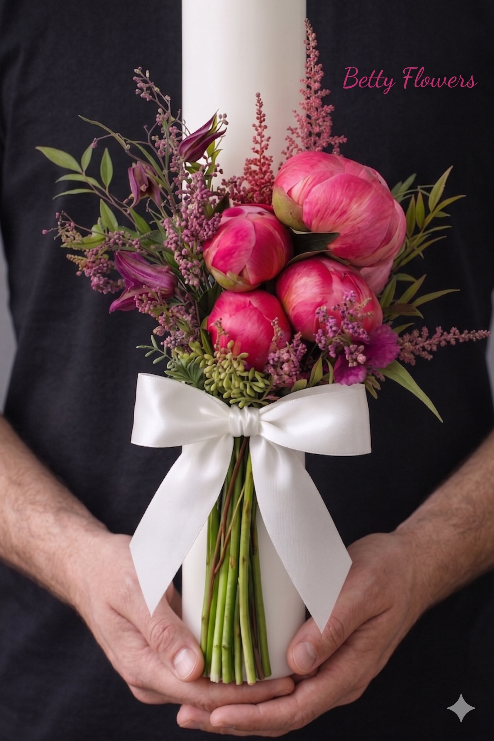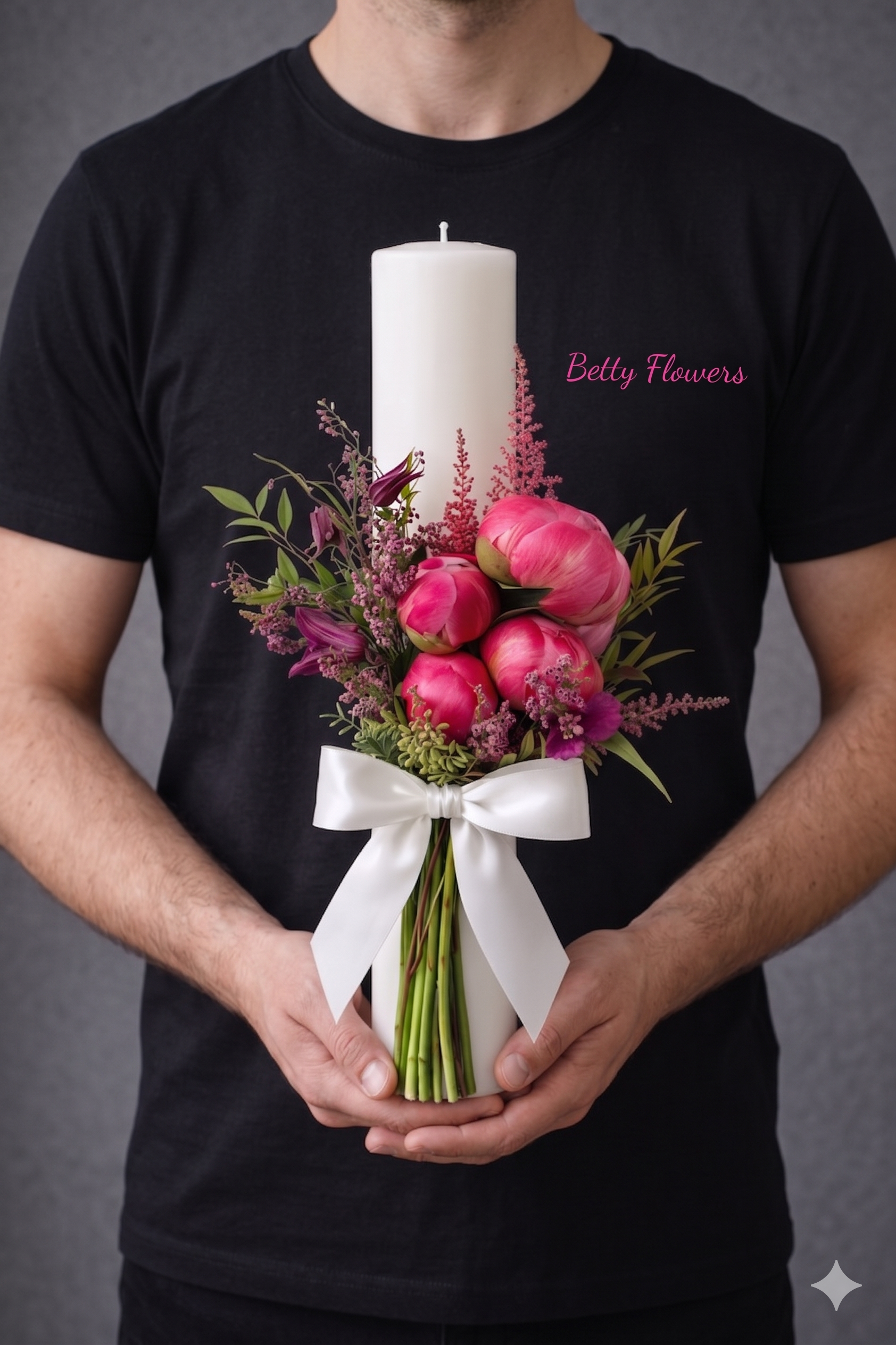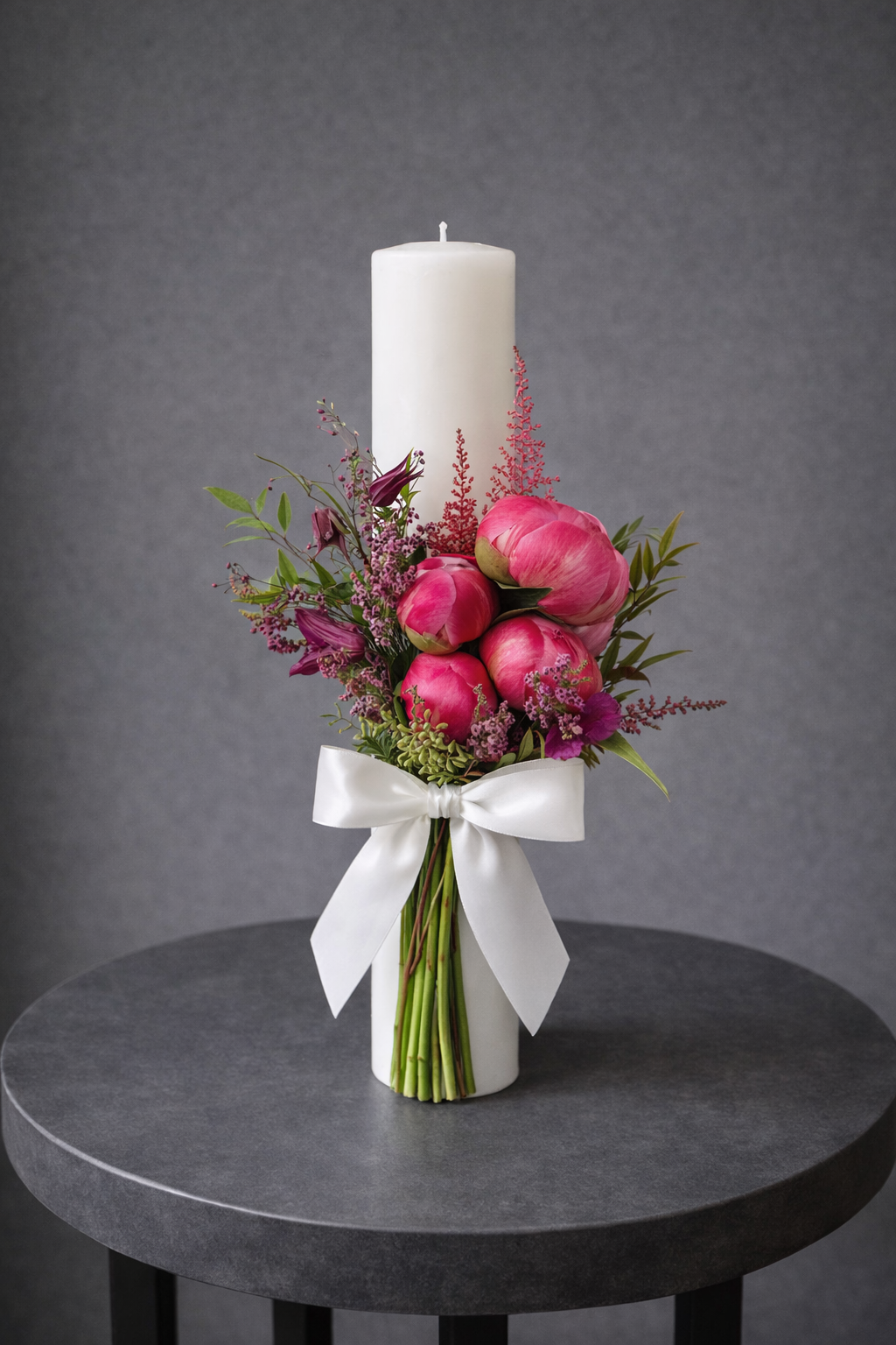 Lumânare Nuntă ‘Betty Flowers’ – Bujori și Astilbe