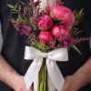 Bujori nuanță corali: 5 fire Astilbia roșie: 5 fire Elemente de decor Lumânare cu înălțimea de 40 cm