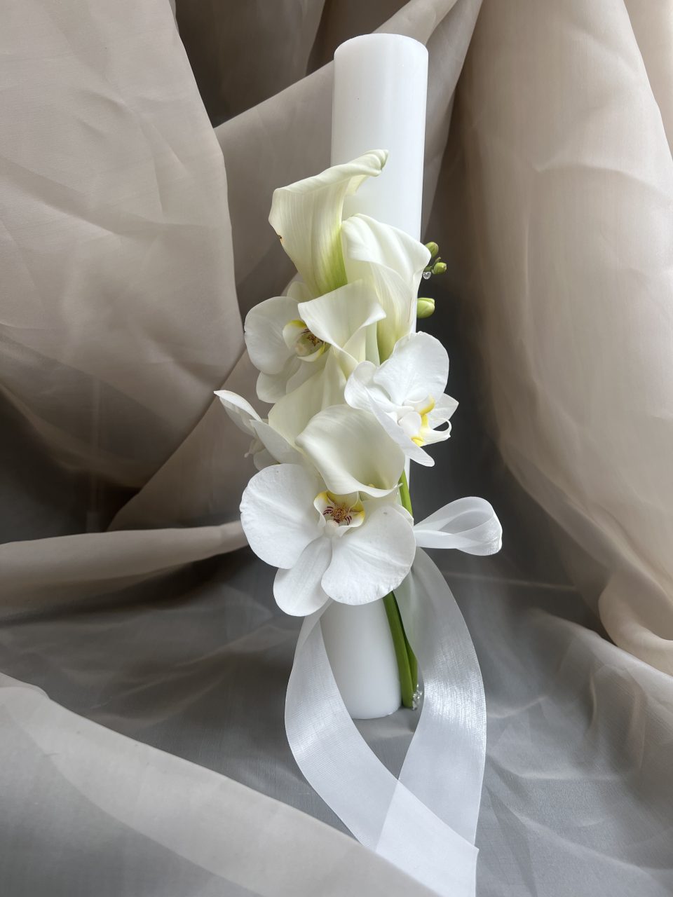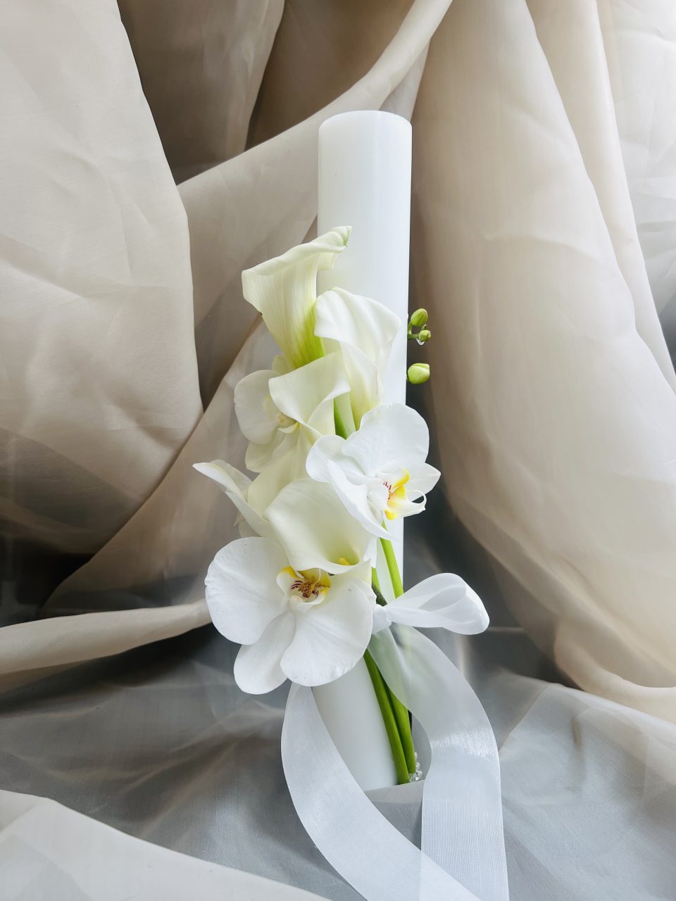 Lumânări de Cununie din Ceară Naturală cu Orhidee și Cale Albe