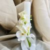 - 5 fire de cale albe, flori simbolice ale purității și eleganței, care adaugă o notă sofisticată.