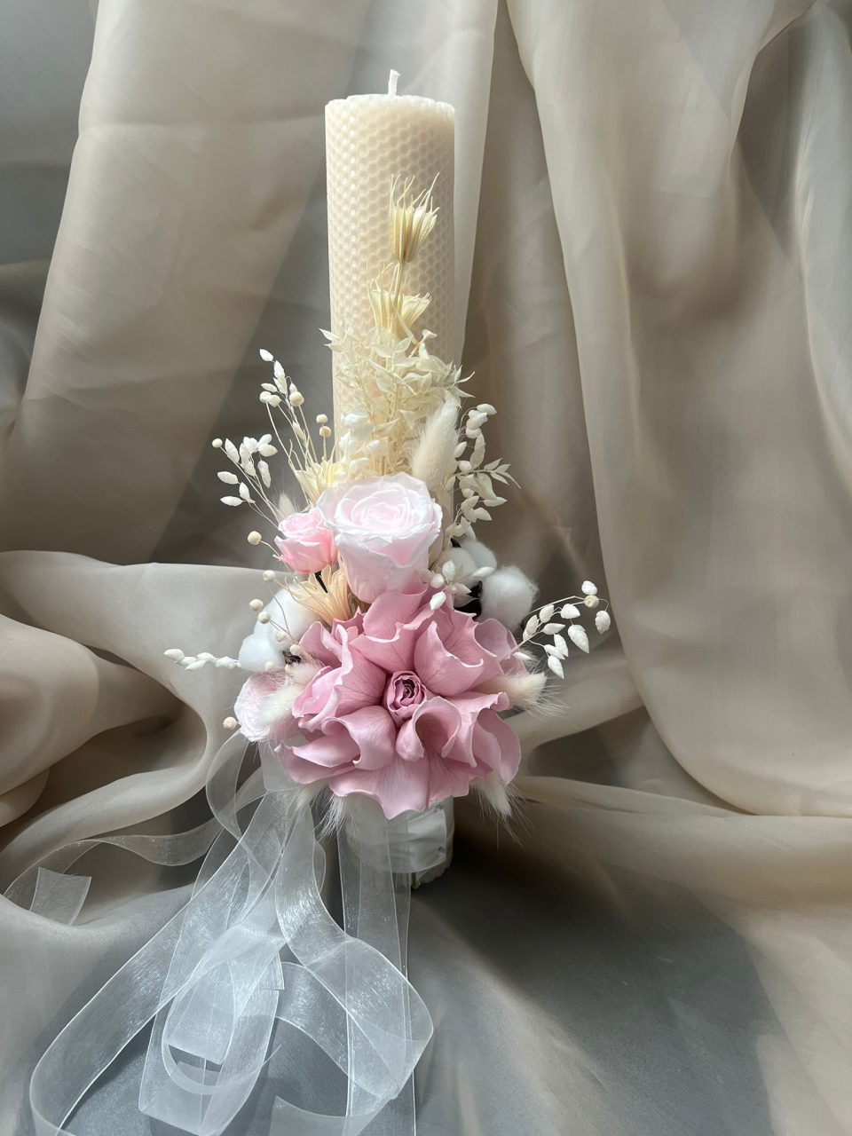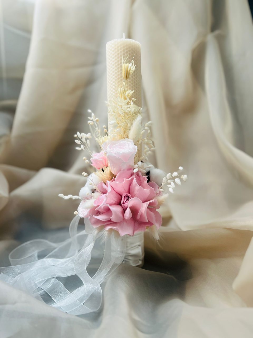 Lumanări de Cununie cu Flori Criogenate în Nuanța de Roz Pal – Descriere Produs