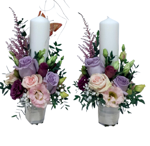 Set Lumanari nunta cu flori naturale uscate si criogenate Lc 4