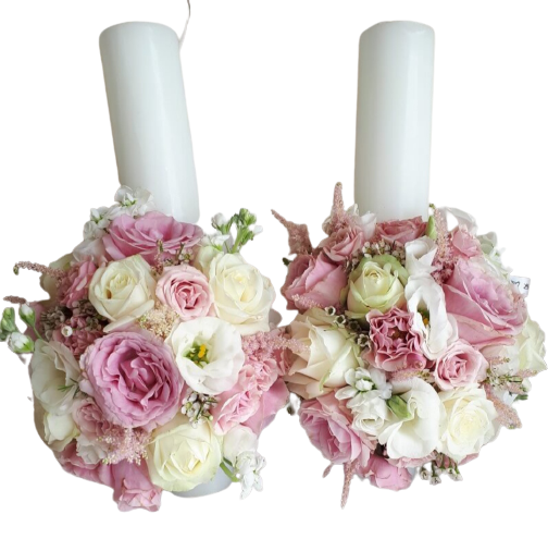 Set Lumanari nunta cu flori naturale uscate si criogenate Lc 4