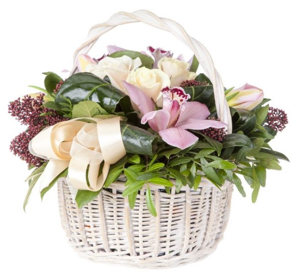 Îmbinăm pentru tine trandafiri diafani, , orhidee exotică și hypericum, să fure oricui inima și ochii.