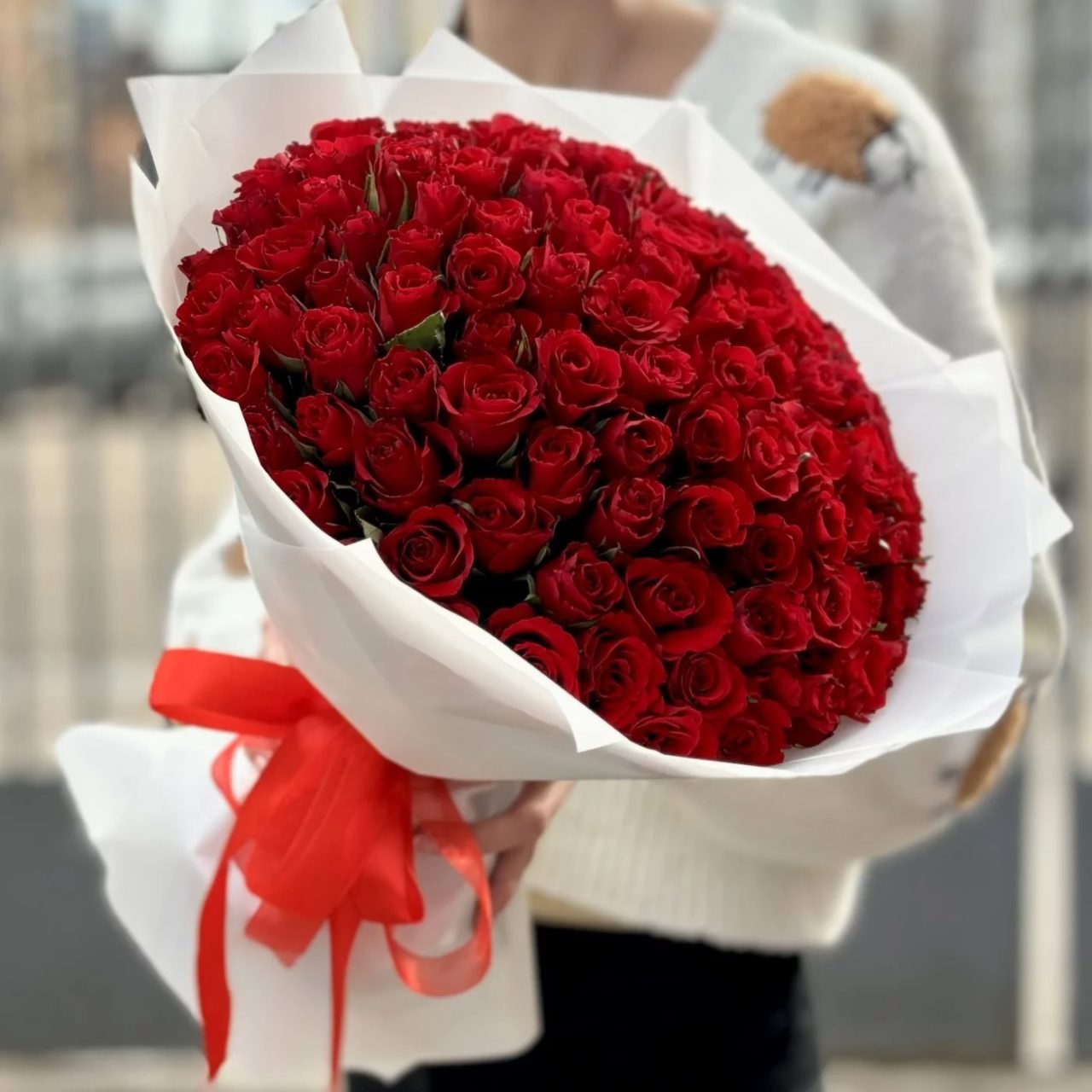 Simbolul suprem al dragostei: Buchet gigant cu 101 trandafiri roșii premium
