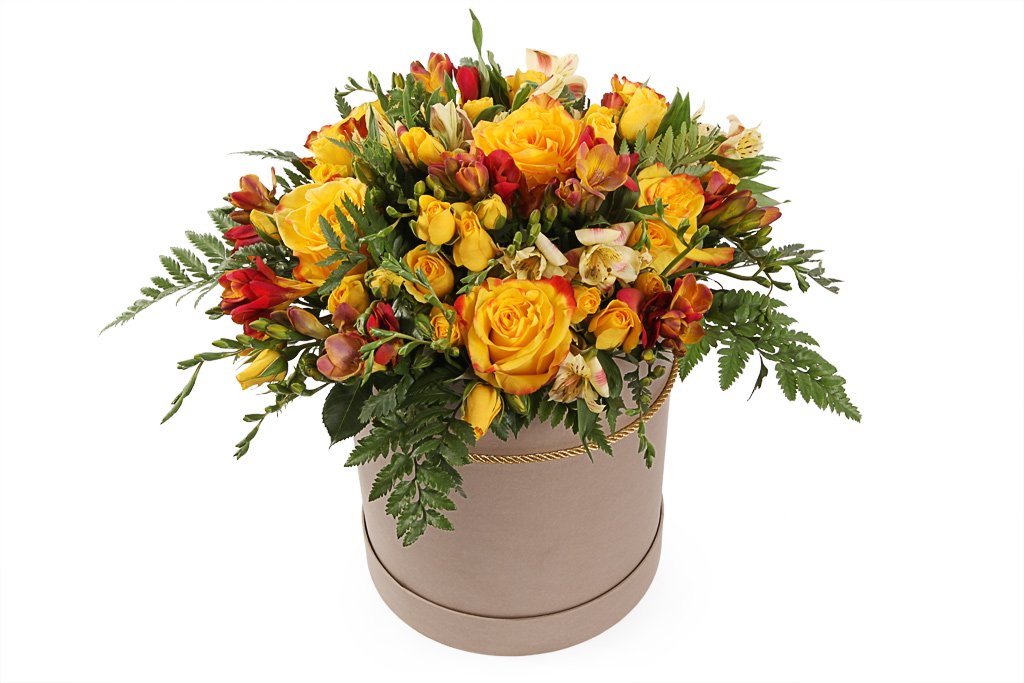 Un aranjament floral de toamnă în care, pe lângă flori, dovlecii ornamentali dau un farmec aparte. Aranjamentul conține trandafiri, crini peruvieni, crizanteme și Solidago, toate în nuanțe de toamnă. Comandă acest coș cu flori online și noi garantăm livrarea lui în cel mai scurt timp