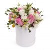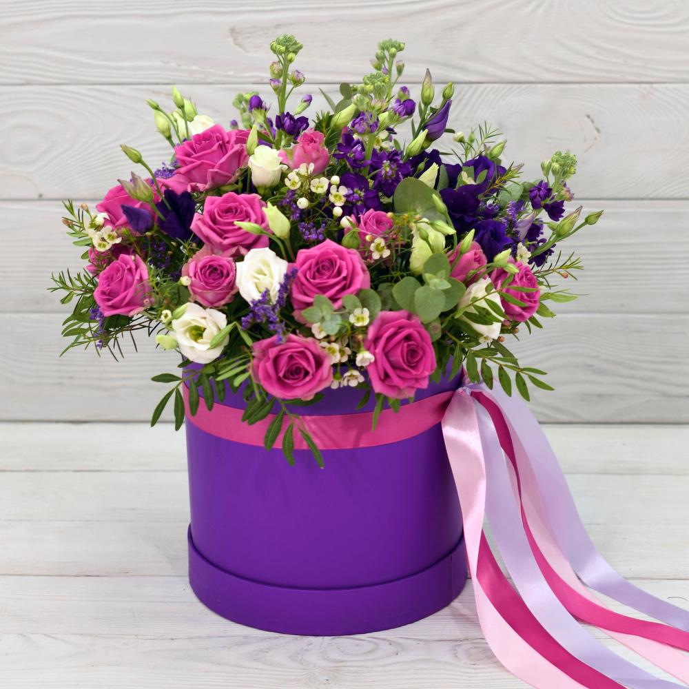 Un buchet cu aspect vesel, realizat din trandafiri ciclam, lysiantus mov, matiola mov,ideal pentru a felicita sau marca o aniversare.