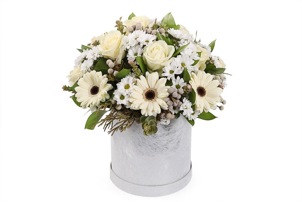 Când cauți o combinație florală distinsă și interesantă, îți recomandăm să-ți îndrepți privirea către creația noastră din brasica albă, euphorbia gerbera alba , crizanteme albe, trandafiri albe, eucharis grandiflora. Sunt flori mai puțin cunoscute pentru tine, poate, dar care vor înviora instantaneu locul unde le ve amplasa.